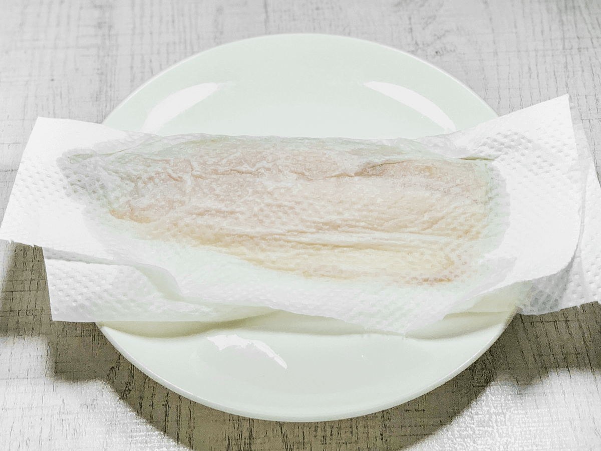 酒を両面にふってそのまま10分置き、ペーパーで汁気を拭き取る。